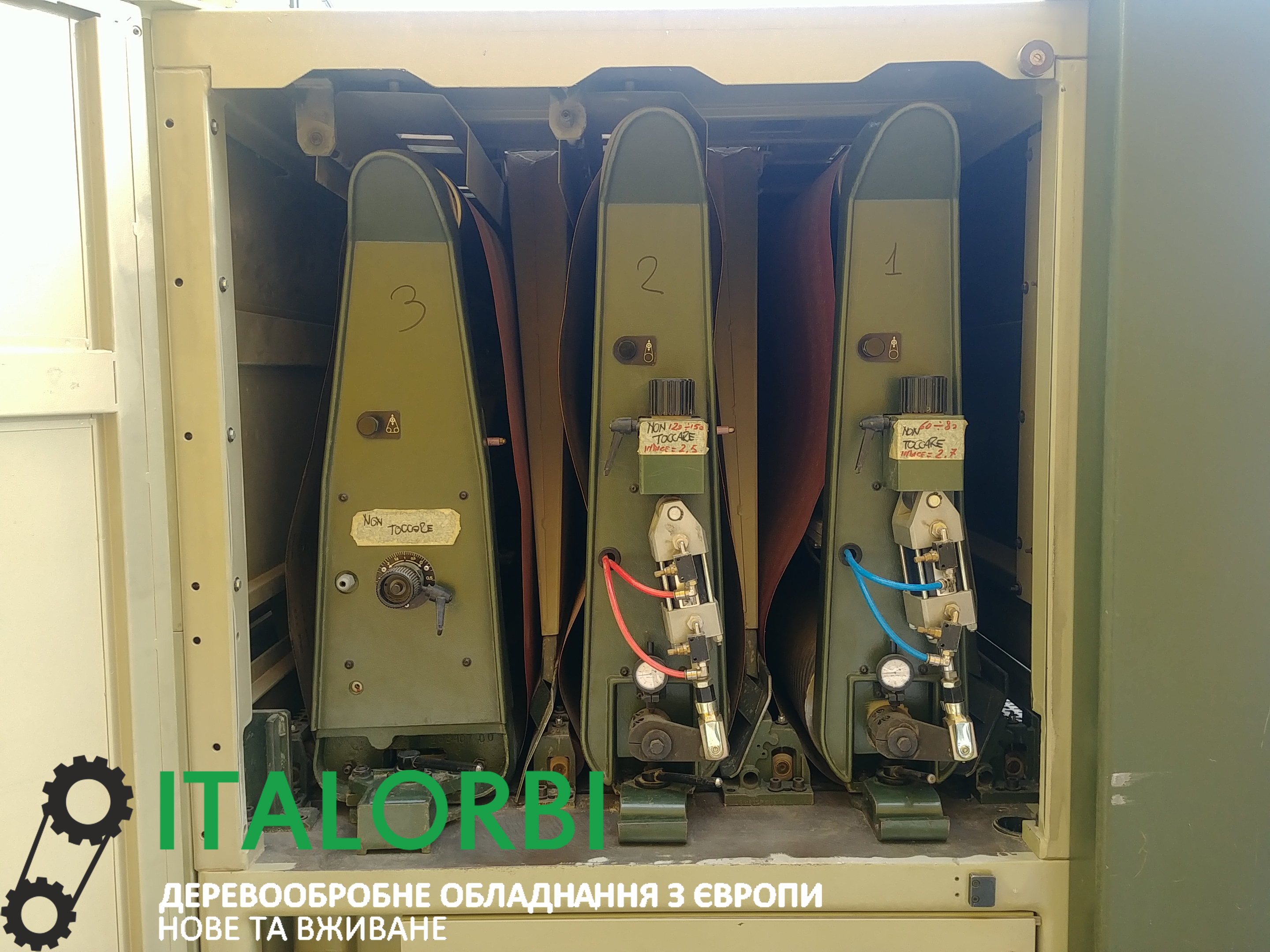 Цена: 9000 euroЦіна: 9000 євро по курсу дняСтан: відновленийКількість валів: 31 вал-калібрувальний(металевий)2 вал-шліфувальний(гумовий)3 вал-утюжок + полірувальний вал на виходіРобоча ширина: 1100 ммМаксимальна висота заготовки: 140 ммРозмір шліфувальної стрічки: 2140х1100 ммЗагальна потужність 2 двигунів: 30 кВтОдин з двигунів на 3 швидкості: 4,5-7,5-15 кВтРегулювання швидкості подачі робочого стола-варіаторомПневматичне виставлення усіх валів+витяжка в комплектіГабарити:Ширина: 1900 ммДовжина: 2200 ммВисота: 2200 ммЗапропоновані машини повністю функціонують після технічного огляду. Можна перевірити їх у місці придбання