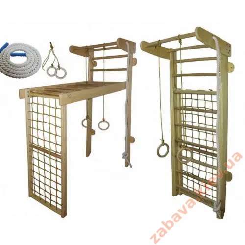 Ми відправимо цей куточок до Вас у будь-який потрібний день.У комплектації: шведська стінка-трансформер, канат, кільця гімнастичні. Як заощадити місце у дитячій кімнаті, але при цьому створити повноцінний спортивний куточок для дитини? Який спортивний куточок для дітей в квартиру маленької площі? Найкращий спосіб вирішення цієї проблеми – купити шведську стінку-трансформер.Розміри (ДхВхШ):- кількість перекладин на шведській стінці (трансформер у зібраному вигляді) – 9/10 шт.- кількість перекладин на верхньому турніку - 2 шт.- висота шведської стінки - 2100 мм- ширина шведської стінки – 800 мм- ширина шведської стінки з турніком – 870 мм.- виступ стаціонарного турніка - 600 мм- довжина рукохода (модуль рукохід) - 1530 мм- ширина рукохода (зі стійками) – 725 мм.- ширина рукохода (внутрішній розмір) – 655 мм.- виступ рукохода від стіни - 1560 мм- виступ рукохода з п'ятаками (з кріпленням до стіни) – 1585 мм.- висота сітки гладіаторської - 1520 мм- ширина сітки гладіаторської (зі стійками) - 650 мм- ширина сітки гладіаторської (внутрішній розмір) - 580 мм- діаметр перекладин шведської стінки, турніка, рукохода - 38 мм- діаметр поперечок мотузкового набору - 28 мм- відстань між перекладинами шведської стінки та рукохода – 180 ммВисота може бути у спортивного куточка трансформер :210 см225 см (+160.00 грн.)240 см (+240.00 грн.)Матеріал виготовлення:- боковини - шведська стінка, рукохід, гладіаторська сітка, турнік - сосна