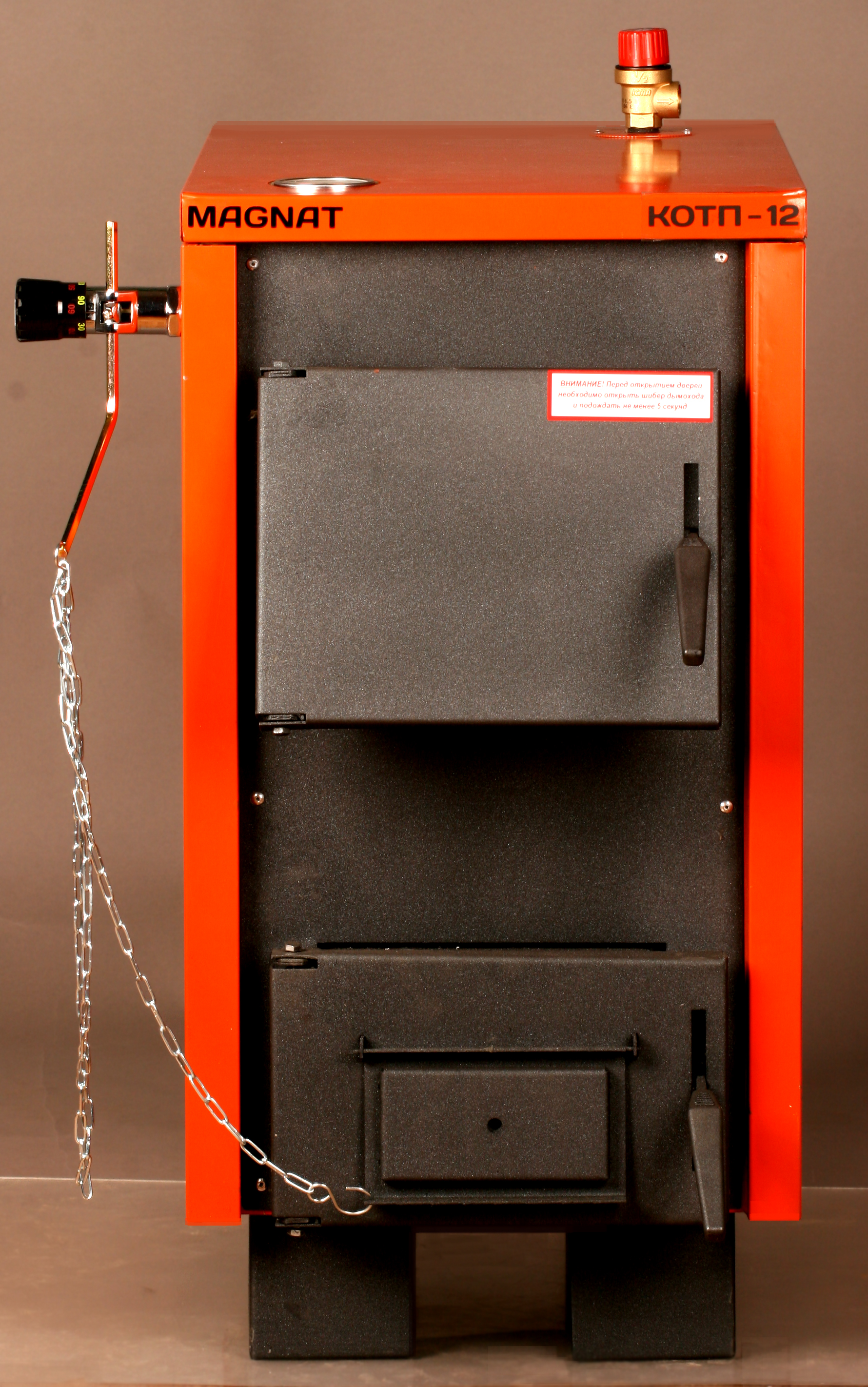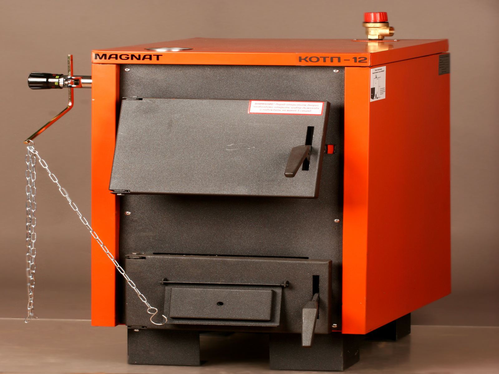 Все модели котлов «MAGNAT» оборудованы термометром для определения температуры в котле, и клапаном давления на 1,5 бара.
