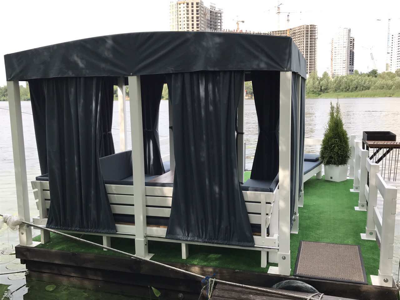 Уютное местечко, чтобы проводить уикенды семьей или небольшой компанией в непосредственной близости от прохлады водоема. В Вашем распоряжении будет беседка размером 3х2,5м, оснащенная п-образным диваном, двумя шезлонгами, удобным столиком, мангалом и навесом со шторками. Диван и один шезлонг можно соединить в 2-спальную кровать. Чехлы на матрасах съемные. Беседка оснащена швартовочным крепежом для водного транспорта. Для отдыха будет удобно расположиться компании до 8 человек. Беседку можно спустить в водоем со стоячей и проточной водой. Конструкция беседки разборная (можно убрать в сухое помещение для зимнего хранения). Беседка уникальная и единственная в Украине. Авторское исполнение. Фото реальные. Продается полностью комплектная беседка. Со всеми дополнительными вопросами звоните, пожалуйста, по указанным телефонам.
