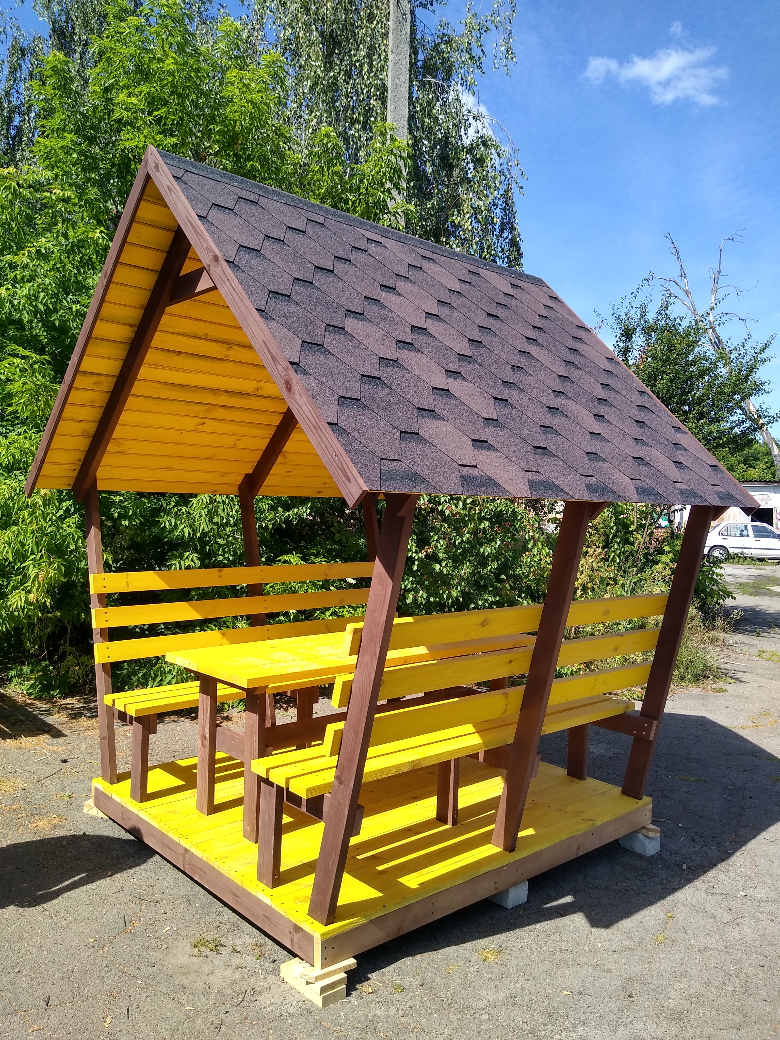 Альтанка 1.85*2мМатеріал сосновий брус.Дах м'яка черепиця.